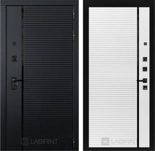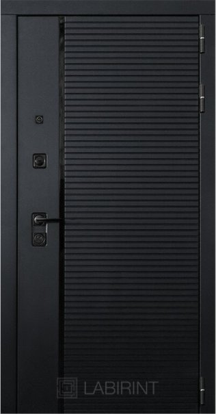 Фурнитура в черном цвете: Броненакладка врезная, накладка со шторкой, глазок , дверная ручка, ночная задвижка. Цилиндр ключ-вертушка Apecs, регулируемый эксцентрик.